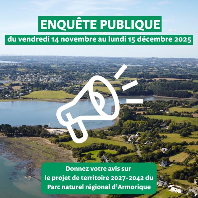 L’enquête publique sur la future charte du Parc d’Armorique débute vendredi prochain, 14 novembre pour une durée d’un mois ! Cette enquête pilotée par la Région Bretagne vous permettra de donner votre avis sur le 𝐩𝐫𝐨𝐣𝐞𝐭 𝐝𝐞 𝐭𝐞𝐫𝐫𝐢𝐭𝐨𝐢𝐫𝐞 élaboré avec l’ensemble des élus et acteurs locaux pour les quinze ans à venir. Rendez-vous à partir…