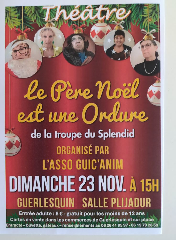 La troupe « Les bons jours ensemble » présentera dimanche 23 novembre, à 15 h à la salle Plijadur la pièce « Le Père-Noël est une ordure », une comédie créée en 1979 par la célèbre troupe du Splendide.