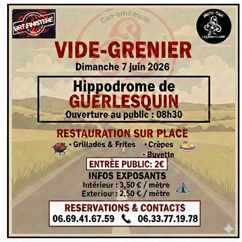 BRT Finistère et le Moto Club Les Korrigans vous proposent dans le cadre du week-end d’animations “Finistère Motors Fest” un vide-grenier sur le site de l’hippodrome et à la salle Plijadur.